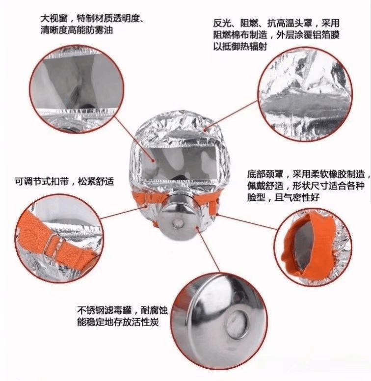 防火防煙面罩是一種空氣凈化型呼吸防護用防煙裝備 (RPED)。防火防煙面罩包括空氣凈化呼吸器,可以去除吸入空氣中的有害污染物,從而保護人員免受火災傷害。此類商品使用(或組合使用)過濾器、濾芯、濾毒罐、吸附劑或催化劑來去除這些污染物。