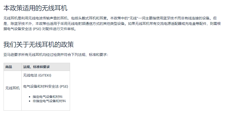 亞馬遜要求所有無線耳機均經(jīng)過檢測并符合下列法規(guī)、標準和要求: