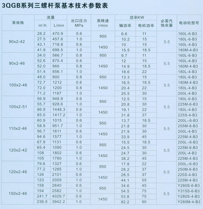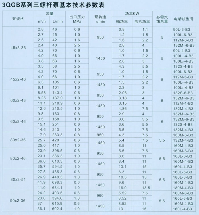 【3QGB系列三螺桿泵】 產(chǎn)品詳細參數(shù)
