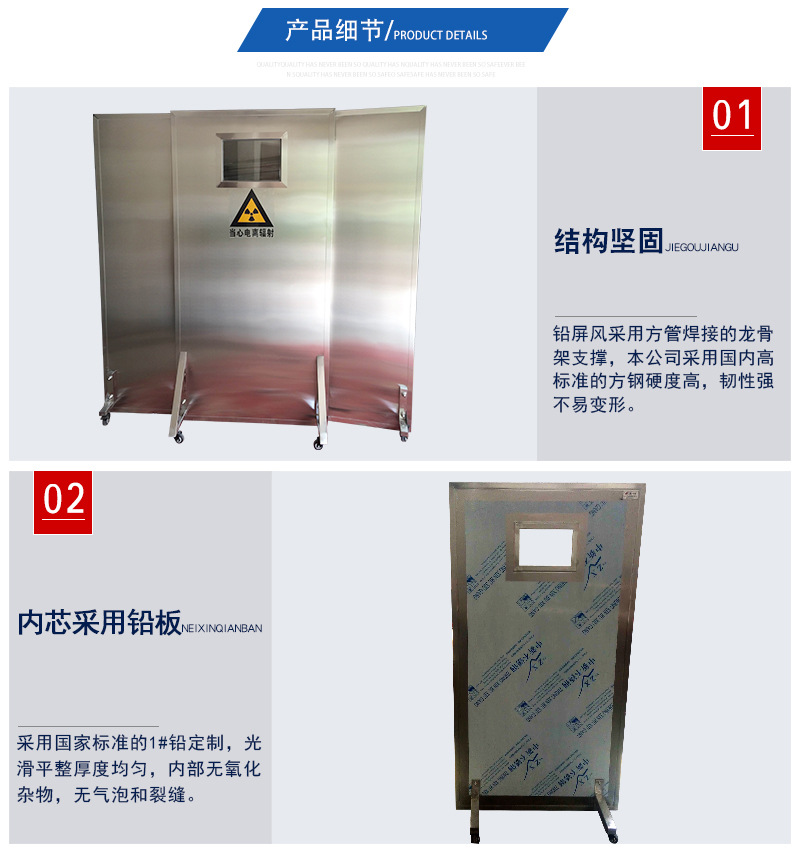 采用新型鉛復合模壓成型防護板,整體結構性強、硬度高、抗拉力大、防氧化、不下垂、吸收射線性強、使用壽命長等特點。