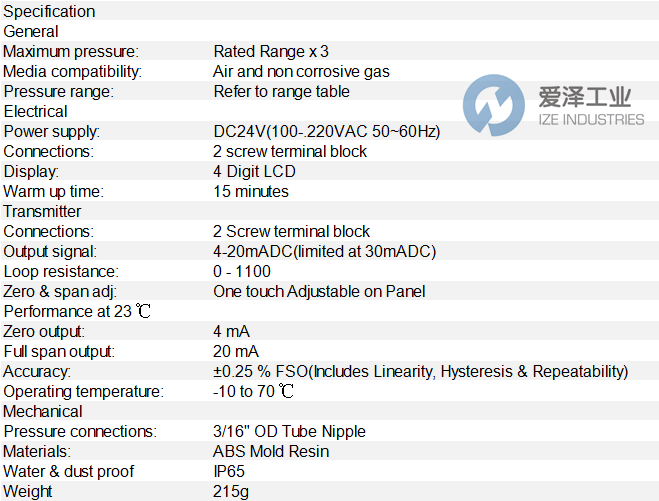 ULFA TECH差壓變送器PATD系列PATD-D200M1技術參數及介紹