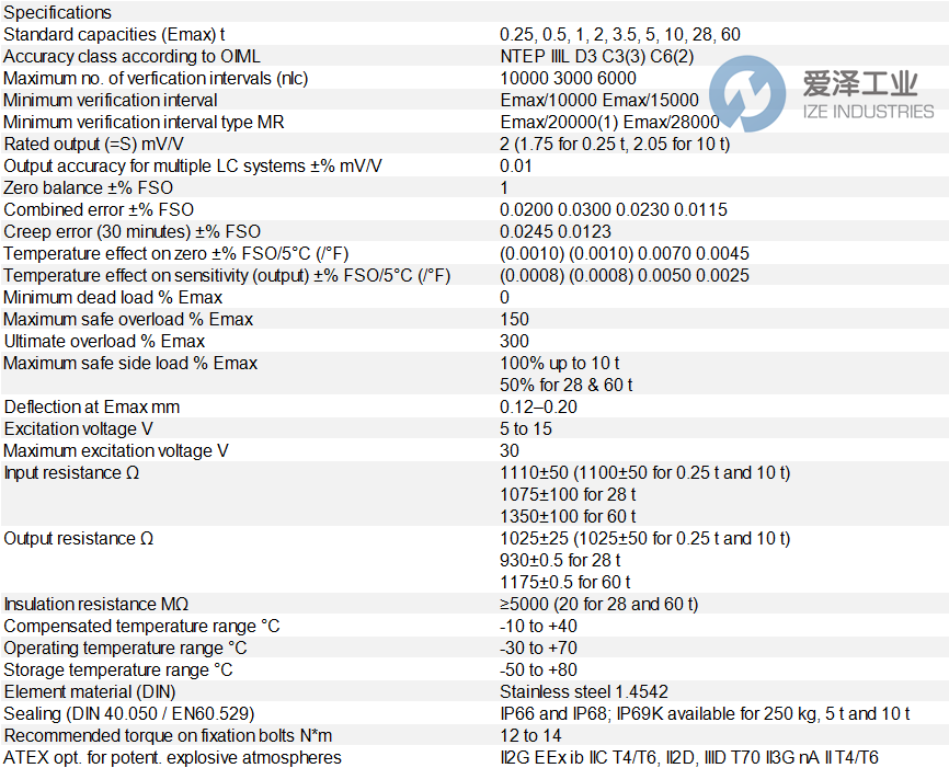 REVERE稱重傳感器RLC系列其他常用型號: