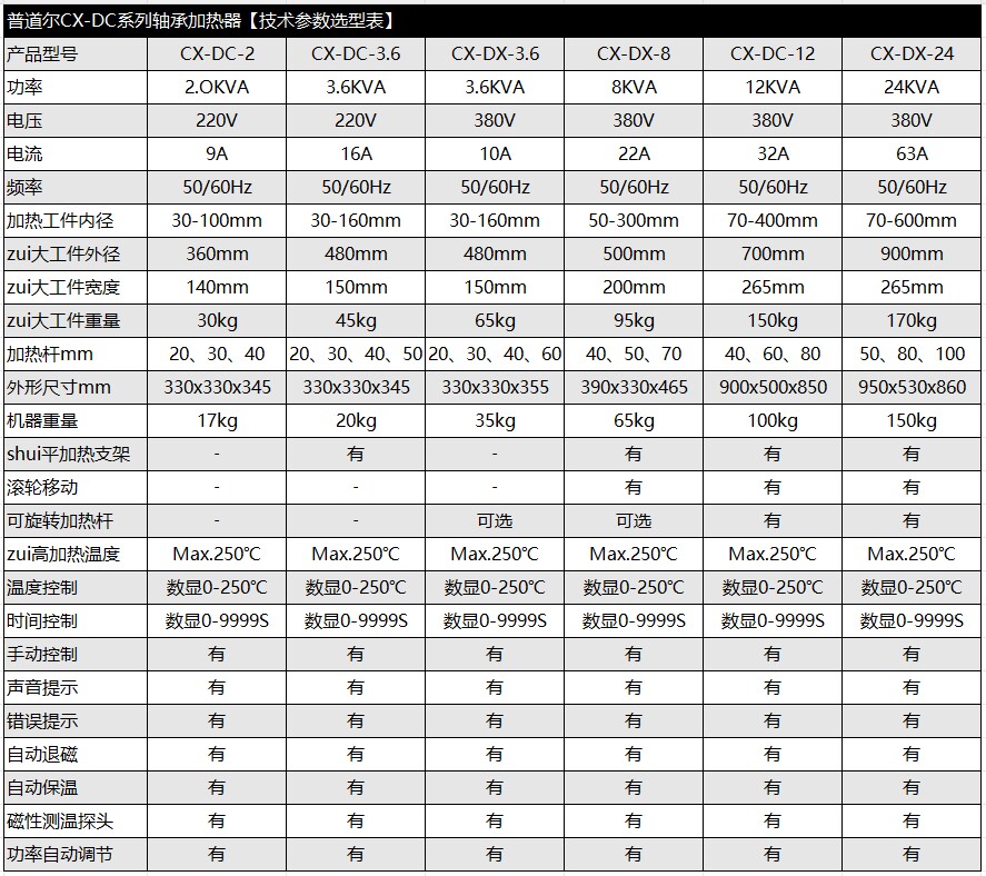 普道爾CX-DC移動式軸承加熱器技術參數及選型表