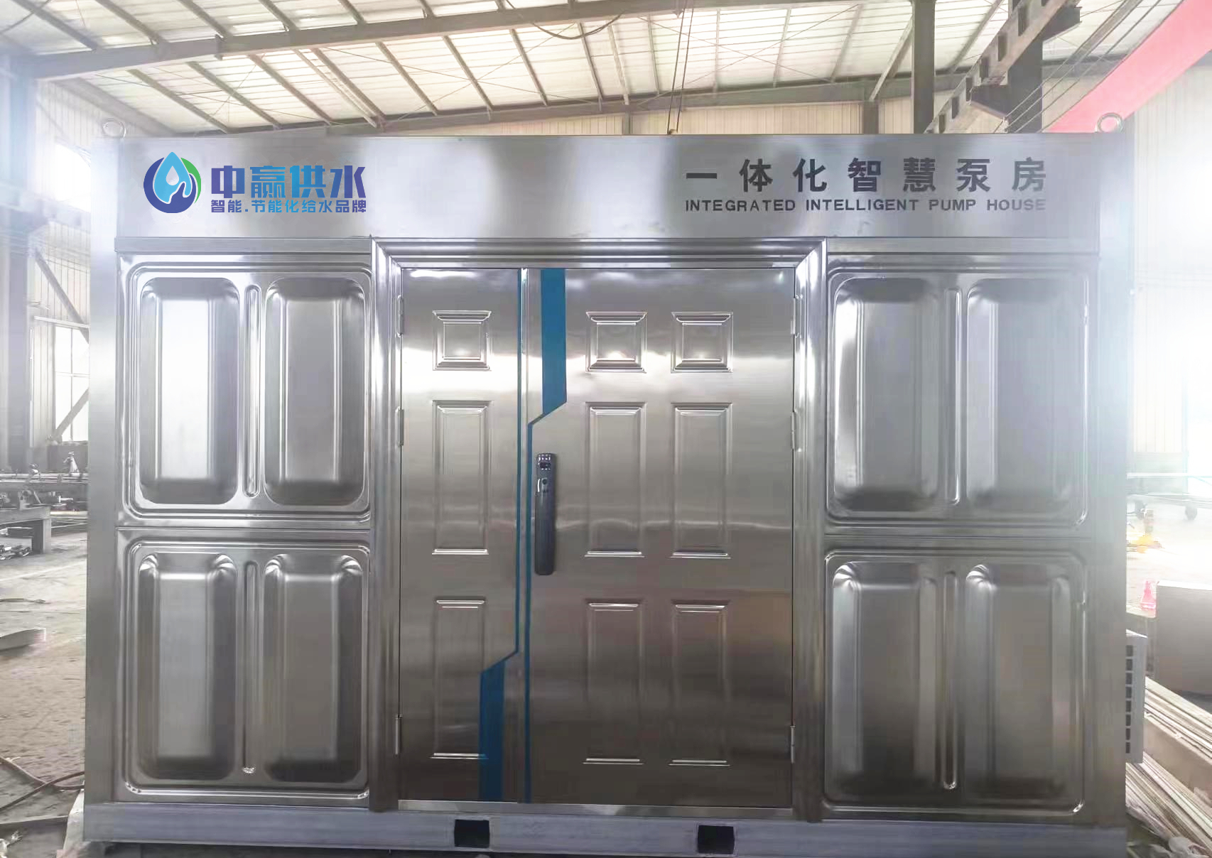 智能一體化供水泵房房體采用不銹鋼材質,提高了房體的防腐性,穩(wěn)定性。延長了一體化智慧泵房的使用壽命。整體設計合理,符合工業(yè)要求。