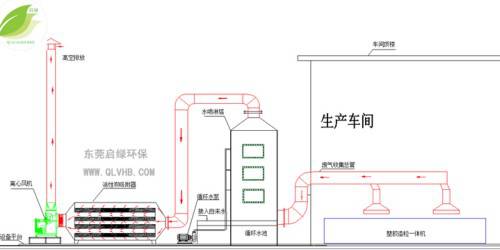 塑膠廢氣處理(水噴淋+活性炭吸附)工藝平面圖