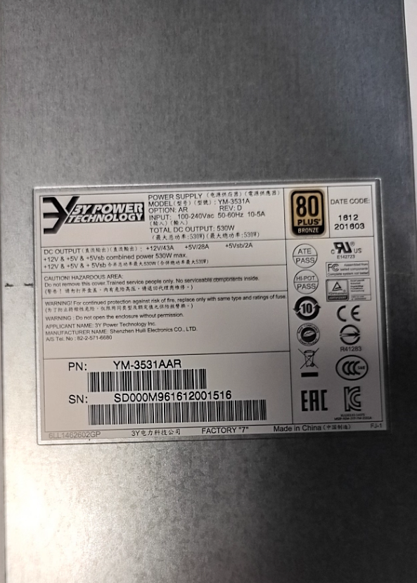 3Y POWER YM-3531A YM-3531AAR 530W AS5300 SS5000J-16 浪潮存儲擴展柜冗余電源模塊、磁盤陣列柜熱插拔電源模塊批發TEL:13910098771