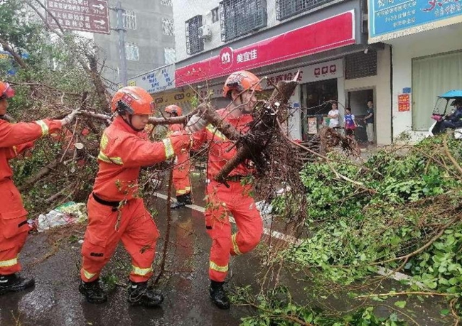 為做好災后恢復工作,9月6日至7日,國家消防救援局廣東機動隊伍出動214名指戰員、18輛車,攜帶1500余件(套)救援裝備,從廣東省肇慶市摩托化機動500余公里,趕赴臺風登陸地廣東省徐聞縣。