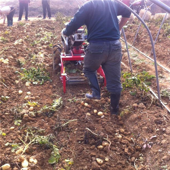 馬鈴薯收獲機是懸掛在8-25馬力手扶拖拉機后方,以手扶拖拉機為牽引動力。主要收獲與該機配套種植和間作種植的馬鈴薯、大蒜、地瓜等地下根莖作物。具有收獲效率高、性能好、破皮率地,結構簡單,操作維修方便等特點。