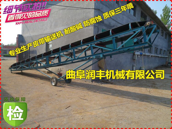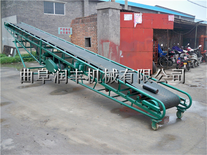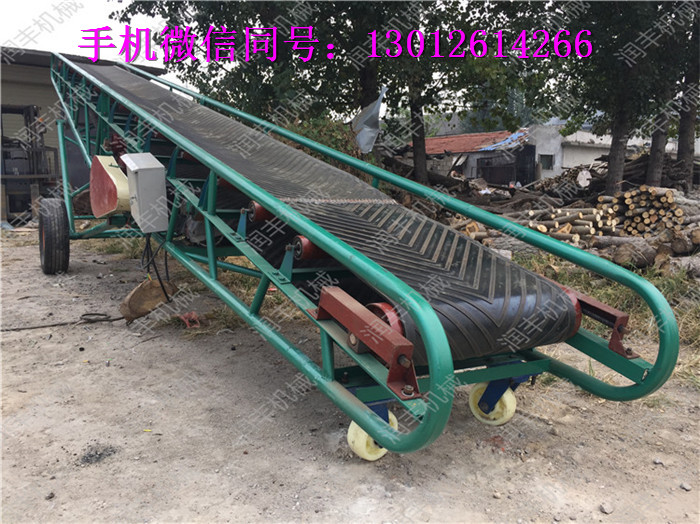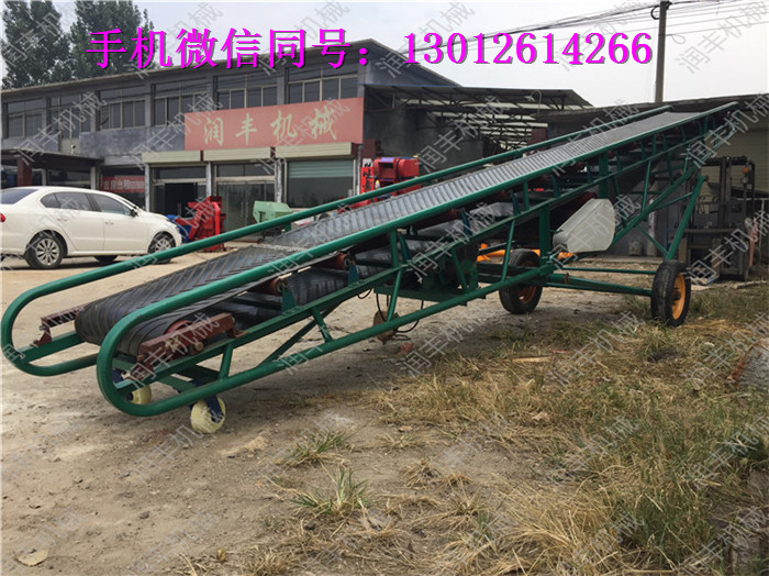 裝車卸車用移動帶升降皮帶輸送機不限制使用場地,皮帶機下面帶有輪子,可來回移動、是一種較方便的裝、卸車用的帶式輸送機,裝卸小麥、玉米、大豆等散裝、袋裝等不規則物體,升降帶移動代替了人工裝卸車,提高了工作效率。