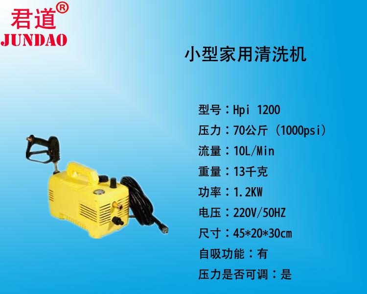 小型高壓清洗機,壓力70公斤,水流量每小時360升,配備有5米高壓管,使用方便,主要用于車輛、地面、墻面、空調、環境衛生等方面的清洗。