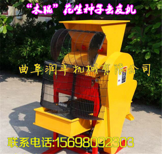 花生脫殼機有機架、風扇、轉子、單相電機、篩網(有大小兩種)、入料斗、震動篩、三角帶輪及其傳動三角帶等組成。
