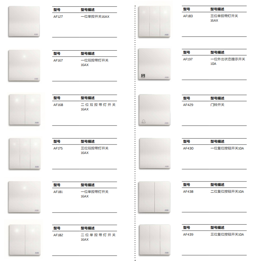 AF121 ?三位雙控開關(guān)16AXAF122 ?二位單控開關(guān)16AX