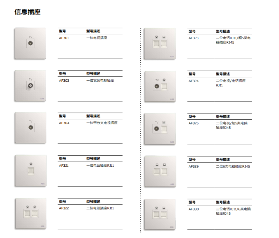 AF323 ?二位電話RJ11/超5類電腦插座RJ45