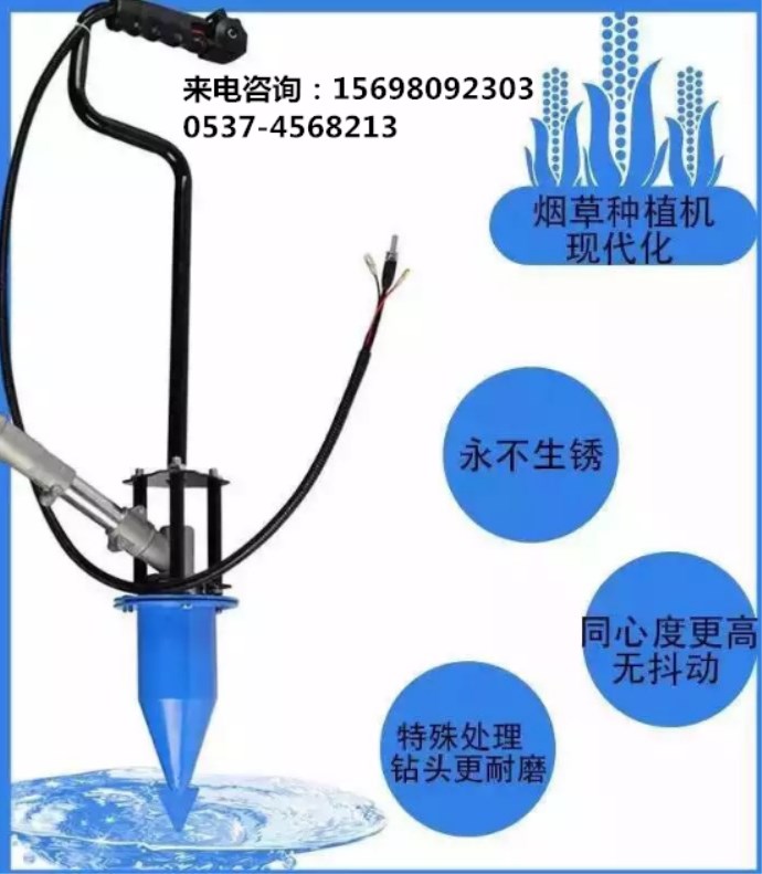 煙鉆打孔機——主要用于播種打孔,煙農的好幫手,省力率。該機成功的代替了,鋤頭,鏟子。煙農作為煙葉生產的執行者和主力軍,是發展現代煙草農業的重要組成部分。近幾年,隨著科技的進步,為此,我們公司推出服務于煙農,提高煙農的效率,減輕煙農的勞動負擔,特推出----煙鉆。跨式煙鉆,煙農的好助手,省力,效率高,大大提高的煙農的工作效率,減輕了勞動強度。