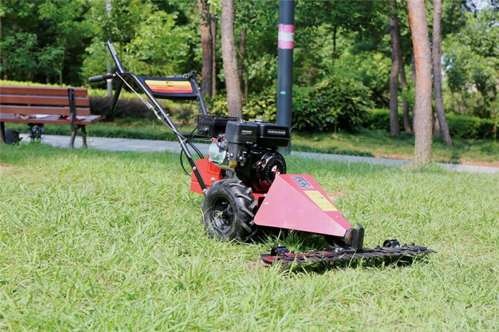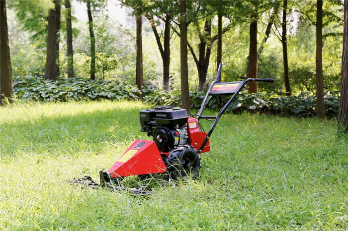 滾筒式割草機(jī)的傳動(dòng)裝置位于切割器的上方,因而又稱上傳動(dòng)旋轉(zhuǎn)式割草機(jī)。一臺(tái)滾筒式割草機(jī)一般裝有并列的1~4個(gè)立式圓柱形或圓錐形滾筒。每個(gè)滾筒下方裝有鉸接2~6個(gè)刀片的刀盤,相鄰刀盤上刀片的回轉(zhuǎn)軌跡有一定重疊量,以避免漏割。滾筒由膠帶或錐齒輪傳動(dòng),相鄰兩滾筒相對(duì)旋轉(zhuǎn),割下的牧草在一對(duì)滾筒的撥送下,向后鋪放成整齊的小草條。能滿足低割要求!