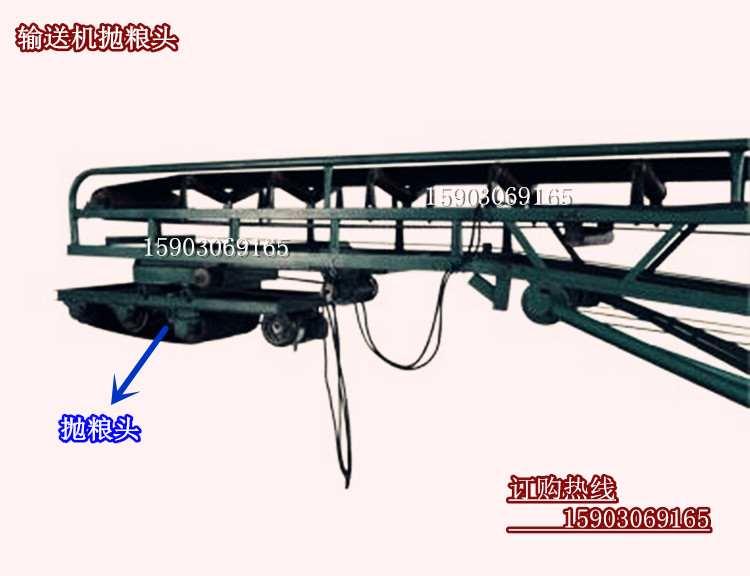 拋糧輸送機的拋糧頭在不用時可電動旋轉收起,收起后可做普通移動式輸送機使用,達到了一機兩用的功效。