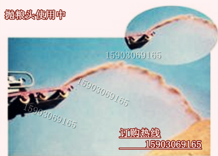 8米拋糧輸送機上專用的拋糧頭是在8米輸送機機頭下方加上能把糧食輸送和揚場集為一體的糧食倉儲、轉運及場上工作的理想糧食輸送設備。拋糧頭能把灑落下來的糧食瞬間加速將糧食拋向空中。拋糧輸送機不僅起到了輸送機的糧食運輸作用和糧食揚場除糠的作用,也可將糧食更遠距離的輸送,堆糧或裝倉往死角處拋糧填滿糧倉、糧庫,做到了普通移動式輸送機做不到的功能。