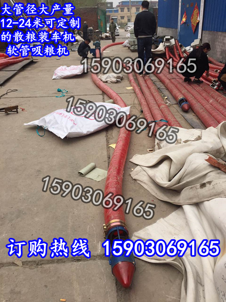 10噸20米長距離糧食倒倉輸送機裝車機是每小時10噸左右20米長的長距離糧食倒倉機可裝車 上料 輸送,本機器是種新型的電機在中間的長距離吸糧機輸送機采用耐磨牛筋管可彎曲盤起、移動方便,15-24米可定做