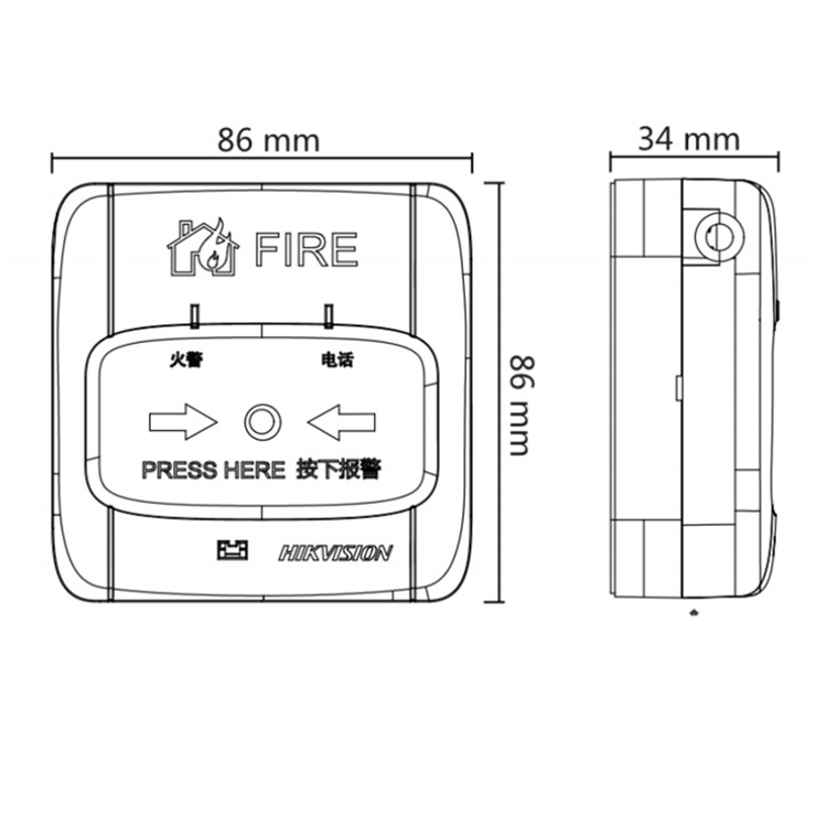 J-SAP-HK1104(Lora) 海康威視手動火災報警按鈕(Lora) 產品尺寸: