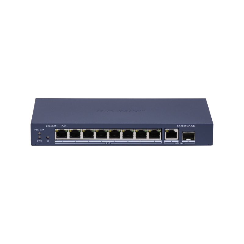 DS-3E0510P-S 海康威視千兆PoE交換機 提供8個千兆PoE電口,1個千兆電口,1個千兆光口 支持PoE輸出功率管理 堅固式高強度金屬外殼 DS-3E0510P-S