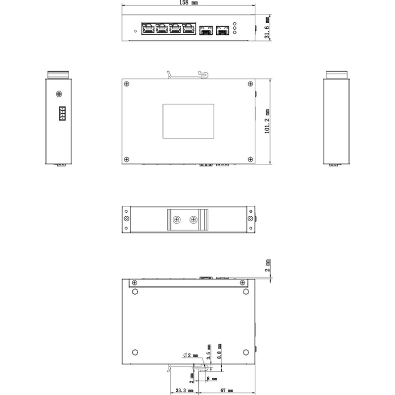 DS-3T1506 海康威視輕網(wǎng)管千兆工業(yè)交換機(jī)(4千兆電口,2千兆光口) 產(chǎn)品尺寸: