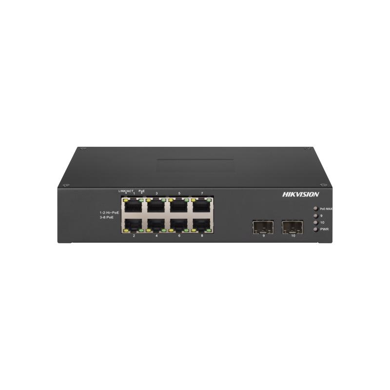 提供2個千兆Hi-PoE電口,6個千兆PoE電口,2個千兆光口