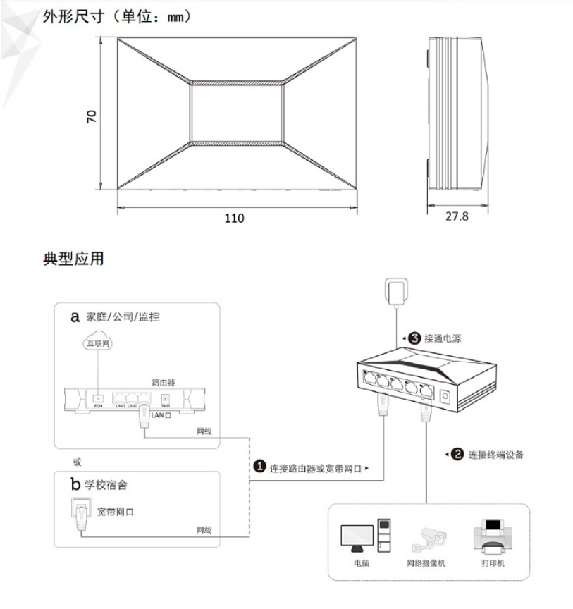 DS-3E0505DL 海康威視非網(wǎng)管全千兆塑殼交換機 產(chǎn)品尺寸:
