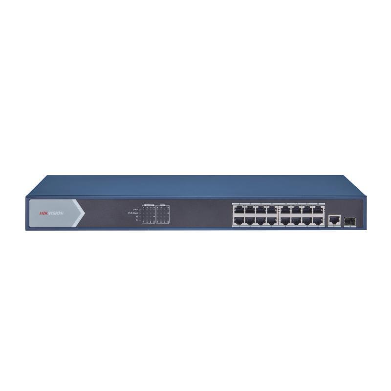 DS-3E0518P-S(B)(國內標配) 海康威視二層非網管全千兆POE交換機 線速轉發、無阻塞設計;存儲轉發交換方式;堅固式高強度金屬外殼;支持IEEE 802.3at/af;支持6 KV防浪涌(PoE口);千兆網絡接入設計;支持IEEE 802.3、IEEE 802.3u、IEEE 802.3x、IEEE802.3ab、IEEE802.3z;提供16個千兆PoE電口,1個千兆電口,1個千兆光口