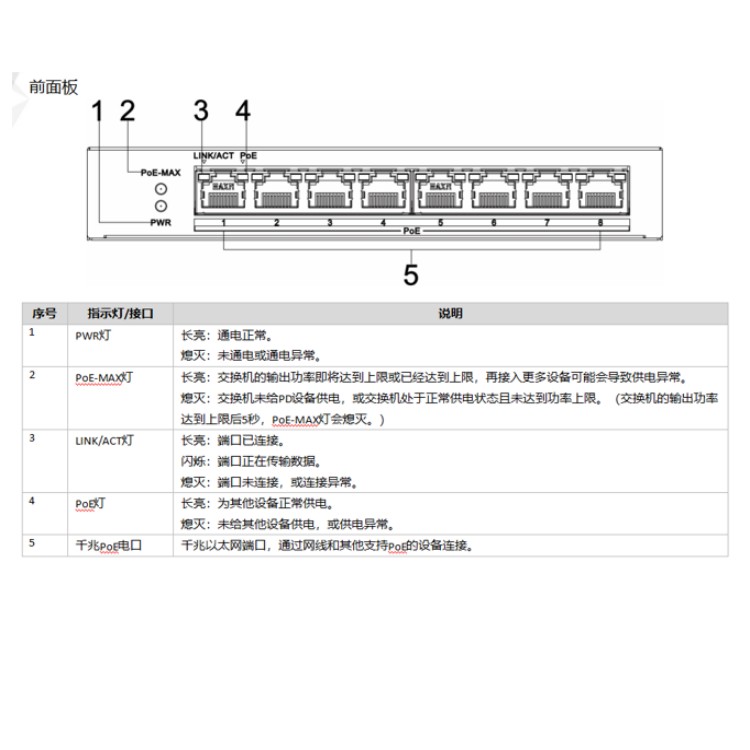 DS-3E0508P-S ??低?口千兆PoE網絡交換機 物理接口