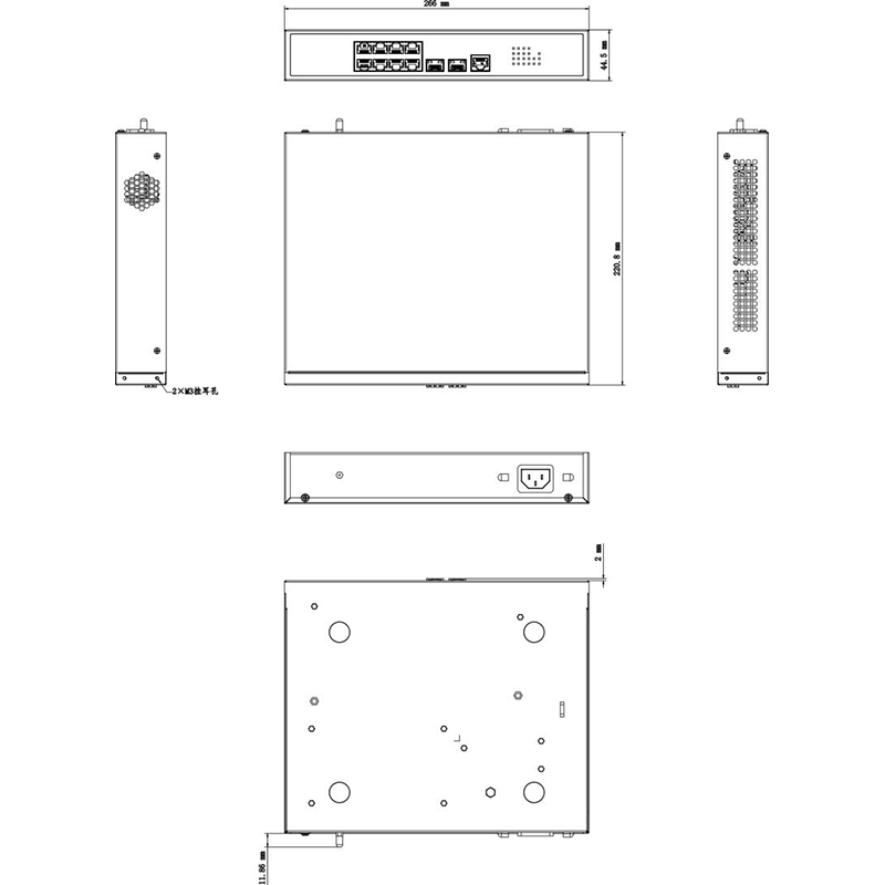 尺寸(寬×高×深):266 mm × 44.5 mm × 220.8 mm