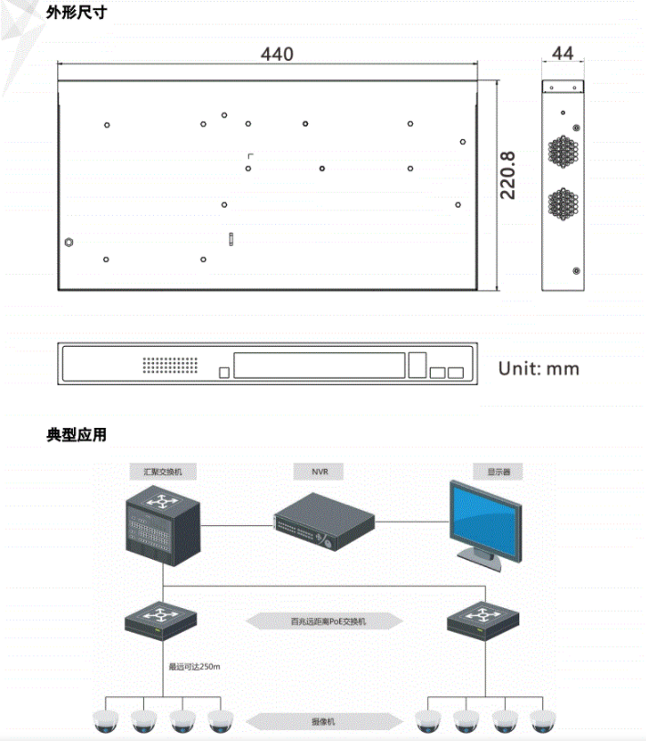 DS-3E0326P-S(D) 海康威視二層非網管百兆POE交換機 產品尺寸: