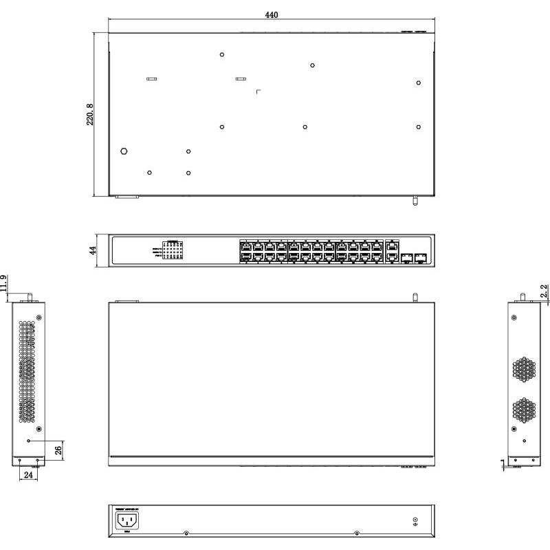 DS-3E0326-S(B) 海康威視二層非網管百兆交換機 產品尺寸: