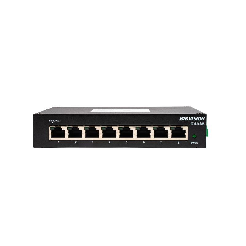 DS-3T0108(B) 海康威視8口百兆工業交換機 提供8個百兆電口。支持6 kV防浪涌。線速轉發。存儲轉發交換方式。堅固式高強度金屬外殼。工業導軌安裝方式。無風扇設計,高可靠性。室外寬溫設計(–40℃~75℃)