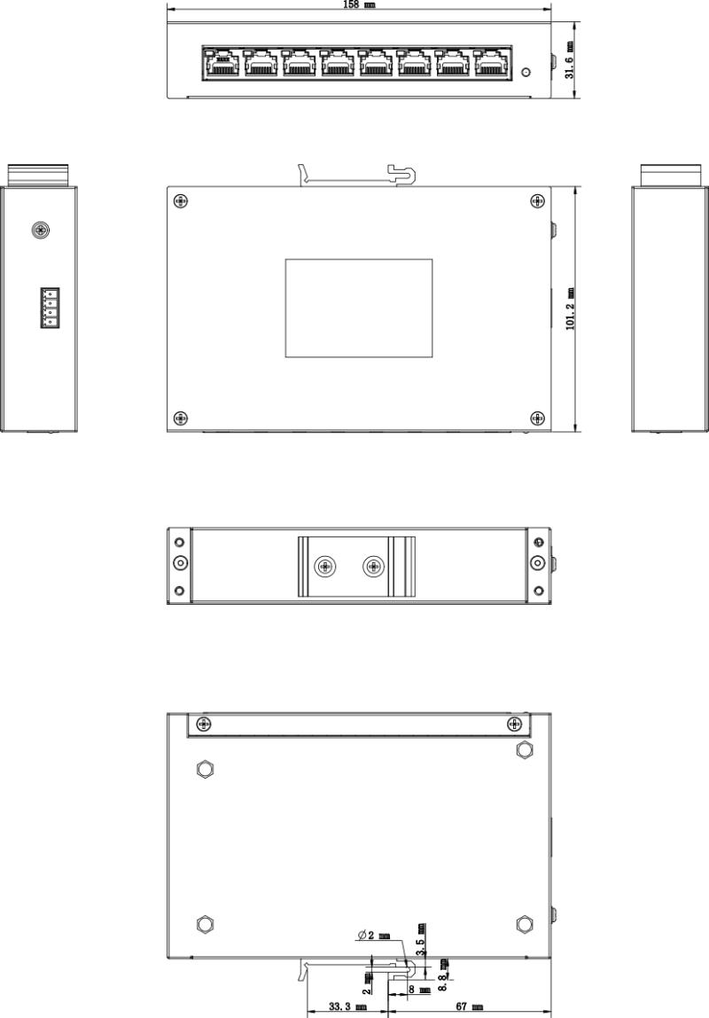 DS-3T0108(B) 海康威視8口百兆工業交換機 產品尺寸: