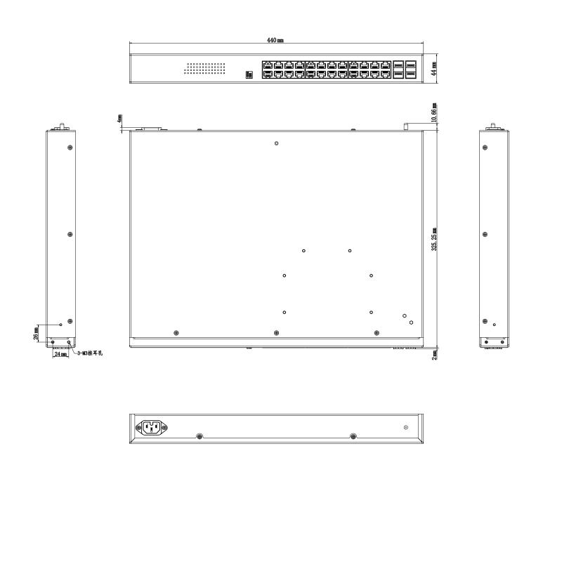 DS-3T0328HP 海康威視二層非網管百兆工業Hi-PoE交換機 產品尺寸: