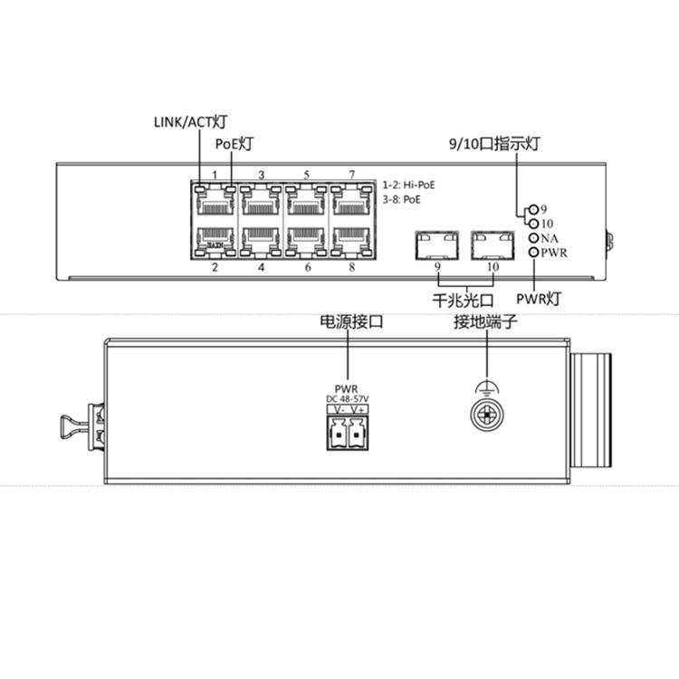 提供2個千兆 Hi-PoE 電口,6個千兆 PoE 電口, 2個千兆光口