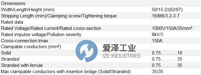 RELIANCE接線端子RCT35系列RCT35 GY 811007技術參數