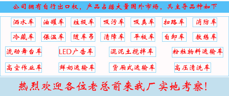 歡迎新老客戶來我廠實地考察、參觀、購車!我公司謁誠為您服務,為您提供詳細解決方案。廠家直銷熱線:13774122073劉2經理