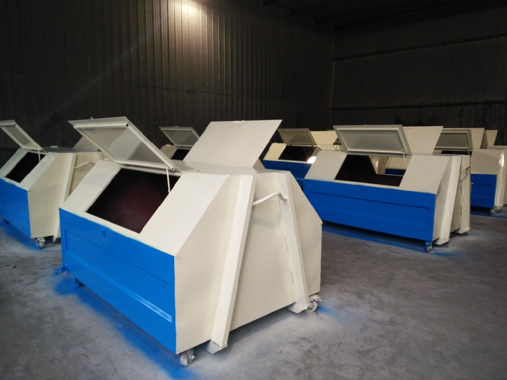 2、箱體為整體密封式結構,上蓋及后擋板采用雙密封膠條,箱體底板后端設有橫向凸起,可以有效防止雨水滲入、蚊蠅滋生、煙塵和惡臭氣體溢出,以及污水滴漏,保證存放、運輸過程不發生二次污染,做到干凈、衛生;