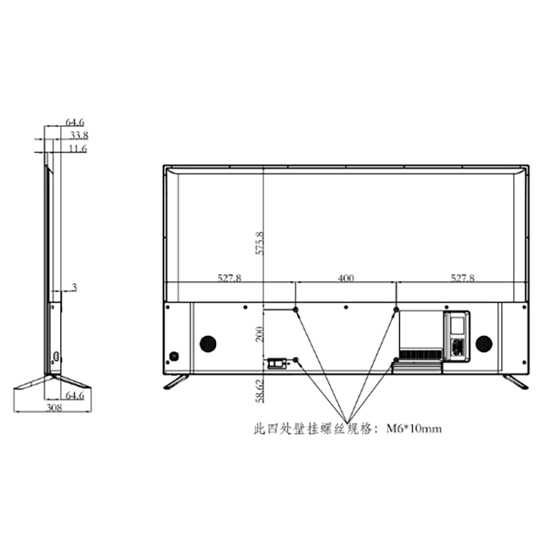 DS-D50UK65 海康威視65寸行業4K塑膠監控顯示器 產品尺寸: