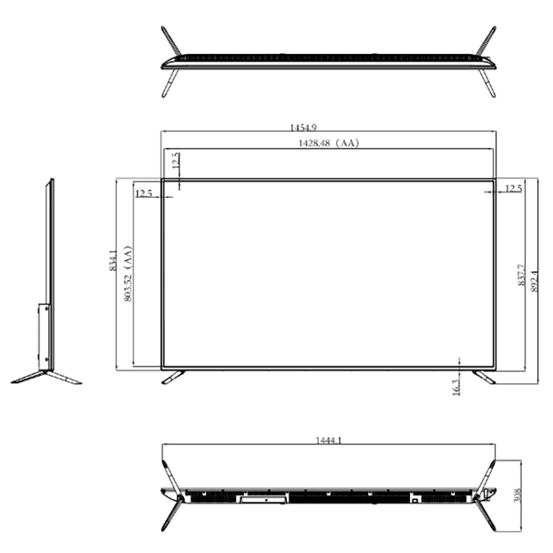 1454.9 (W) mm × 892.4 (H) mm × 308 (D) mm(含底座)