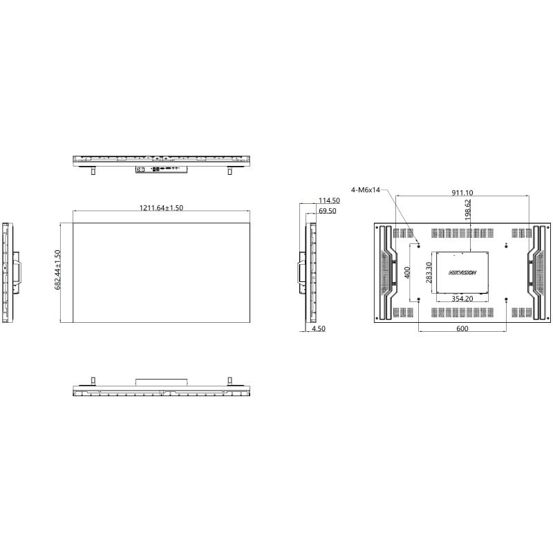 DS-D2055NH-E/T 海康威視55寸LCD全高清顯示單元拼接屏 產品尺寸: