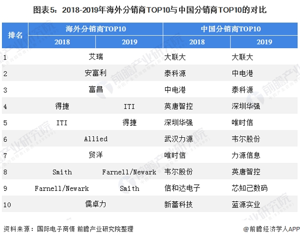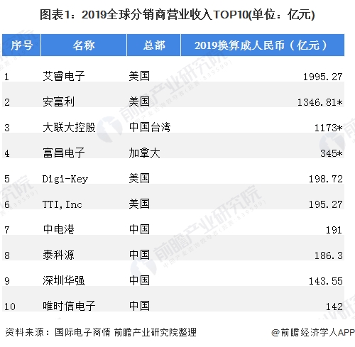 2019全球分銷(xiāo)商營(yíng)收排名TOP10中,只有三家企業(yè)營(yíng)業(yè)收入位于千億以上規(guī)模;美國(guó)艾睿電子、安富利公司以1995.27億元與1346.81億元分別位于第一、二位;中國(guó)臺(tái)灣大聯(lián)大控股公司以1173億元位于第三位。2019全球分銷(xiāo)商營(yíng)收排名TOP10中,中國(guó)本土分銷(xiāo)商占據(jù)一半席位,營(yíng)收總額達(dá)1835.85億元,占2019全球分銷(xiāo)商營(yíng)業(yè)收入比例達(dá)到31%。