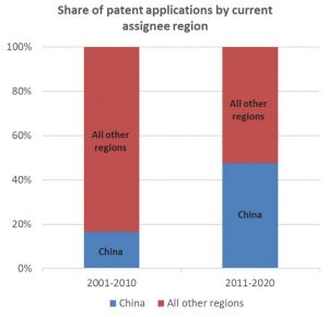 而中國在過去5-10年中為鋰離子專利申請總量的增長做出了很大的貢獻。