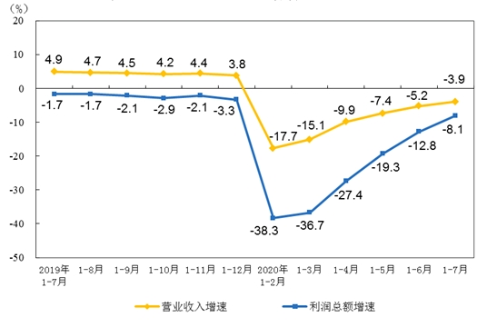 國家統(tǒng)計局發(fā)布了2020年1-7月份全國規(guī)模以上工業(yè)企業(yè)利潤增長狀況。1-7月份,全國規(guī)模以上工業(yè)企業(yè)實現(xiàn)利潤總額31022.9億元,同比下降8.1%,降幅比1-6月份收窄4.7個百分點。其中,規(guī)模以上儀器儀表制造業(yè)實現(xiàn)利潤總額369.9億元,同比增長9.6%。