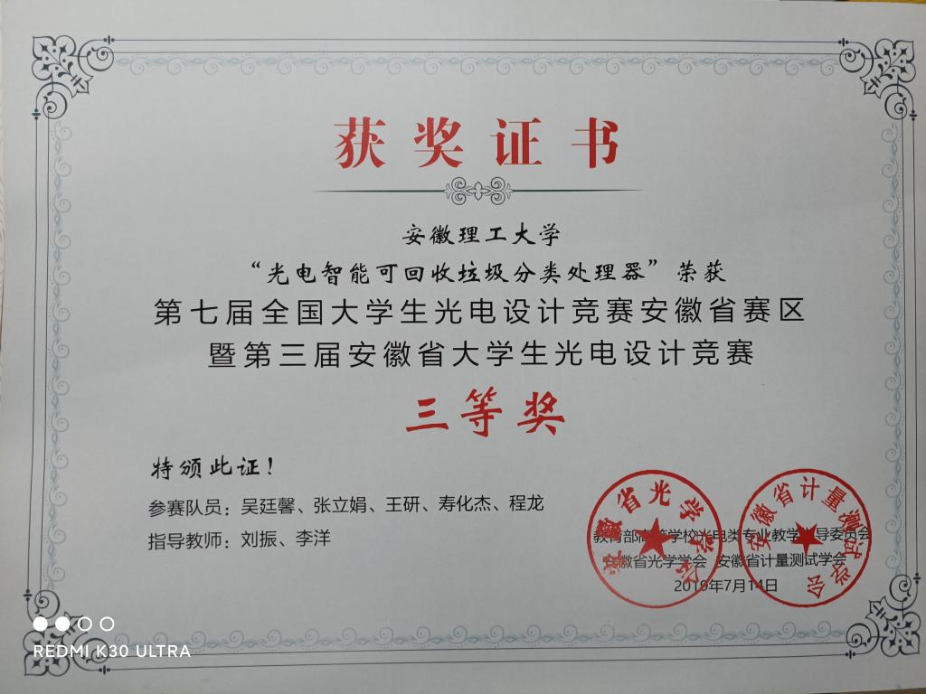 壽化杰同學擔任班級生活委員,已順利錄取中國礦業大學信息與通信工程專業。大學期間榮獲國家勵志獎學金、校獎學金、?!叭脤W生“、“優秀共青團員”等稱號,申請實用新型專利1項,獲安徽省“精科杯”物理實驗創新競賽團體一等獎、全國大學生數學建模競賽(安徽賽區)二等獎。他十分注重綜合能力的提升,大一期間進入校學生會學習部鍛煉一年;在校期間積極參加各類創新創業活動,曾主持過大學生創新訓練計劃省級項目,已順利結題。