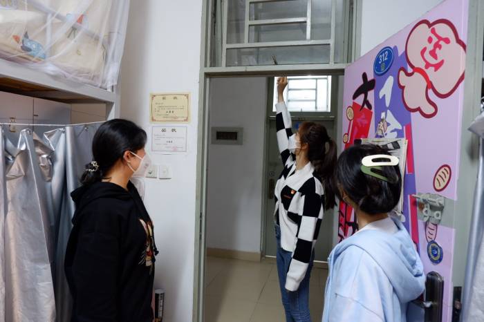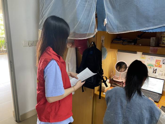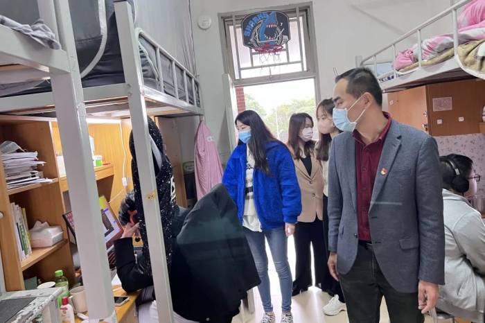 在走訪的過程中,國際教育學院副院長劉京華老師、余娜老師以及兩位輔導員對國寶們逐一慰問,深入了解同學們的學習生活以及宿舍防疫情況,并督促學生做好日常消殺工作。