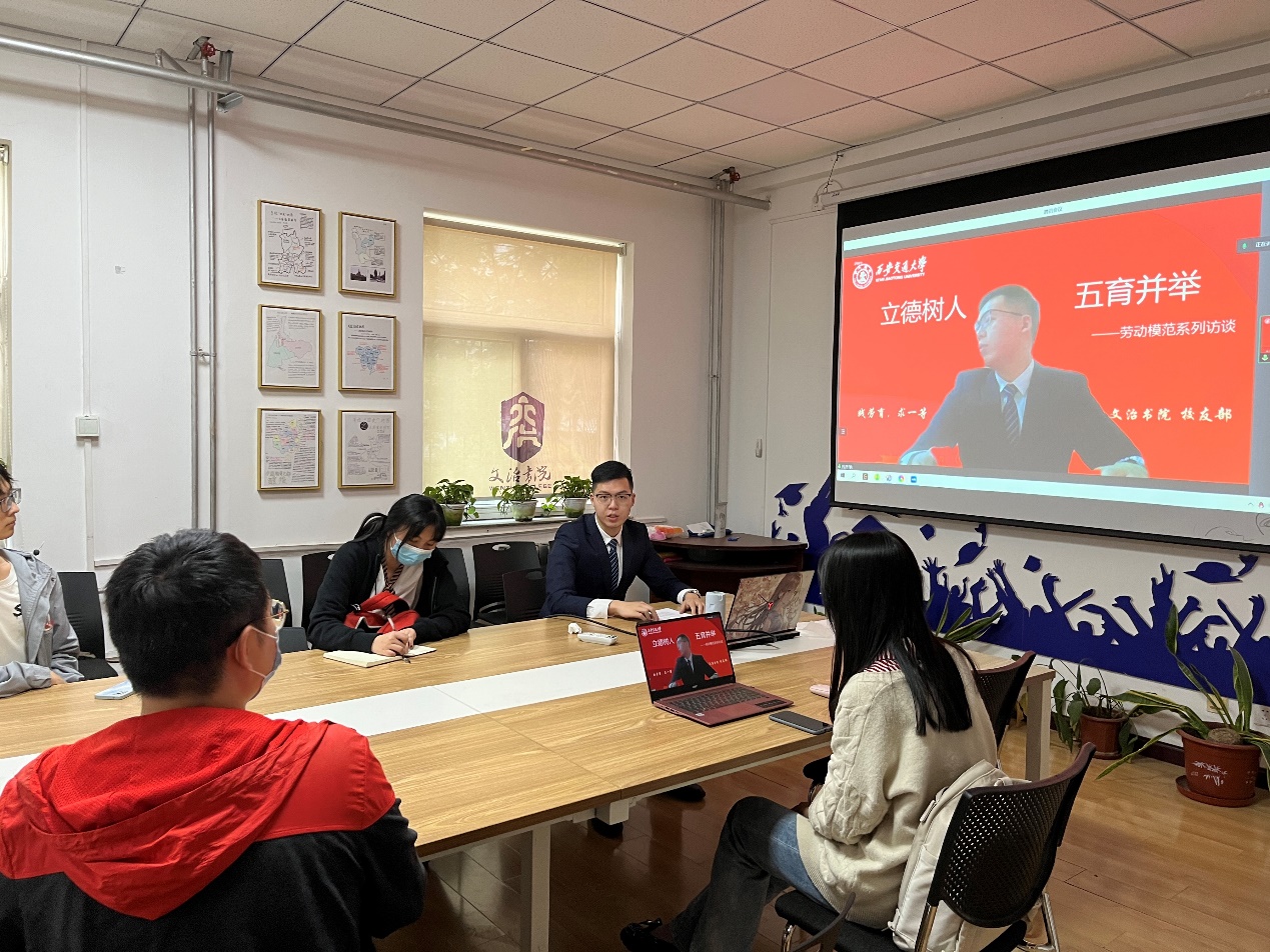 在五一國際勞動節來臨之際,為致敬勞動者、弘揚勞動精神,引導同學們樹立正確的勞動觀和價值觀,人居學院文治書院師生聯合黨支部4月28日通過騰訊會議線上采訪全國勞模陸志林學長,聆聽他的人生經歷與感悟。
