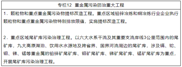 進一步加強重金屬污染防控。以重點重金屬污染物減排為抓手,深入開展重點行業重金屬污染綜合治理,有效管控重點區域重金屬污染。完善全口徑清單動態調整機制,加強重金屬污染物減排分類管理,推行企業重金屬污染物排放總量控制制度。嚴格重點行業企業準入管理,優化涉重金屬產業結構和布局,依法推動落后產能退出。加強重點行業企業清潔生產改造,推動重金屬污染深度治理,開展涉鎘涉鉈涉錳企業排查整治行動,加強涉重金屬固體廢物環境管理,推進涉重金屬歷史遺留問題治理。開展尾礦庫污染治理,加強環境風險隱患排查整治。