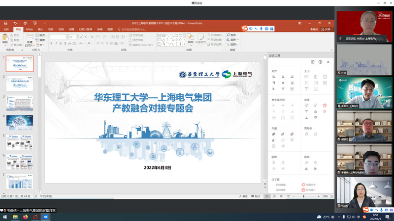 6月3日上午,上海電氣集團(tuán)-華東理工大學(xué)產(chǎn)教融合對(duì)接專(zhuān)題研討會(huì)在線上召開(kāi)。上海電氣集團(tuán)股份有限公司科技管理部副部長(zhǎng)汪浩博士、人力資源部副部長(zhǎng)朱躍杰,我校研究生院院長(zhǎng)杜文莉、校長(zhǎng)辦公室副主任陳嘯寅出席了本次會(huì)議。